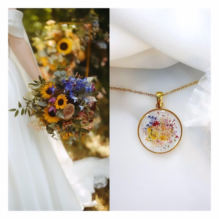 Des bijoux entièrement personnalisables qui respectent vos envies et la composition de votre bouquet. Laissez vous envoûter par des touches de feuilles d'or, un charm cœur délicat ou encore un petit pendentif cœur doré qui accompagnera à merveille votre création.