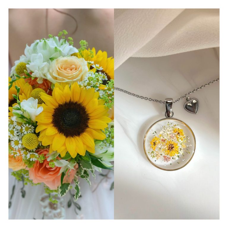 Vos fleurs sont déposées sous presse pour une durée de 6 à 8 semaines. Elles sont ensuite conservées jusqu'au moment de la création de votre ou vos bijoux.