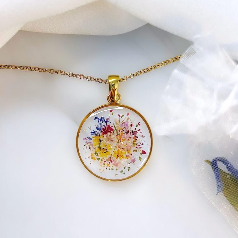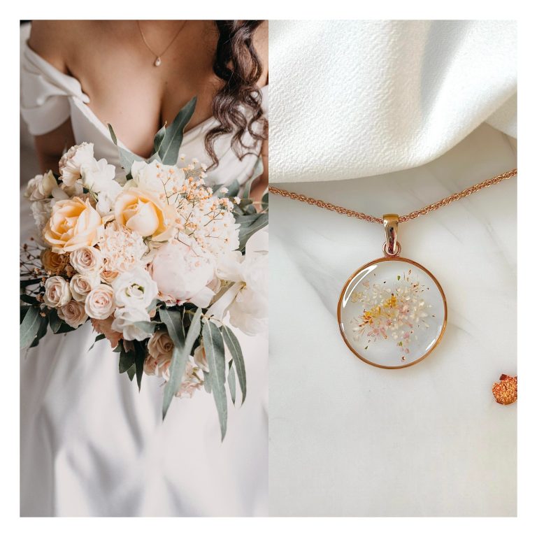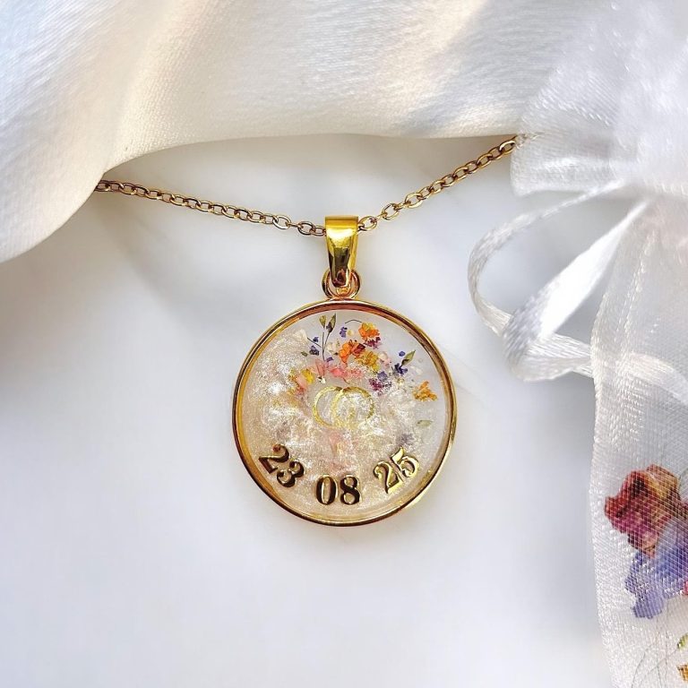 Afin de sublimer votre pendentif vous avez la possibilité de le personnaliser avec des feuilles d'or, d'or rose ou d'argent, un charm coeur ou alliances doré, une touche de nacre blanche ou rose poudré ainsi qu'un petit pendentif coeur doré ou argenté